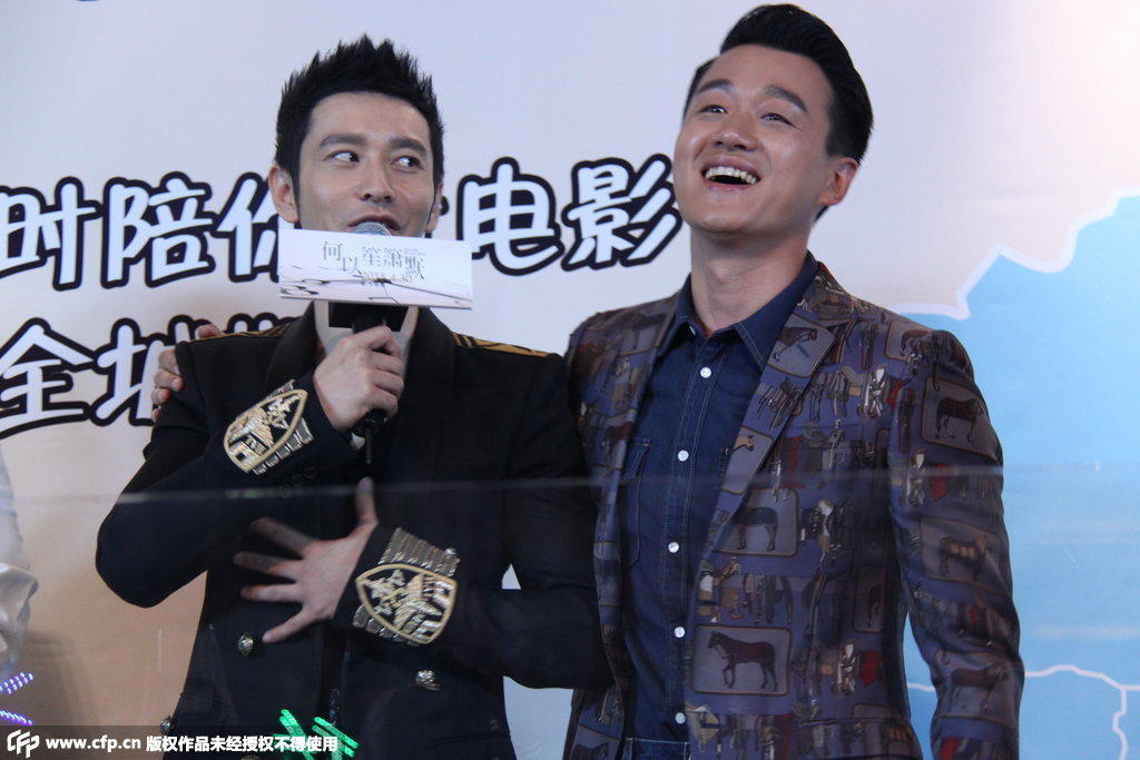 4月26日,电影《何以笙箫默》同时在全国多个城市举行首映礼。一众主创中,杨幂(微博)(微信号:miniyangmi)现身重庆、马苏(微博)去了长沙、沈泰到了哈尔滨、孔连顺前往青岛……在大本营北京,导演杨文军和黄斌携黄晓明、Baby、佟大为(微博)等其他几位主演亮相;黄建新和李少红(微博)等也前来捧场,声势浩大。