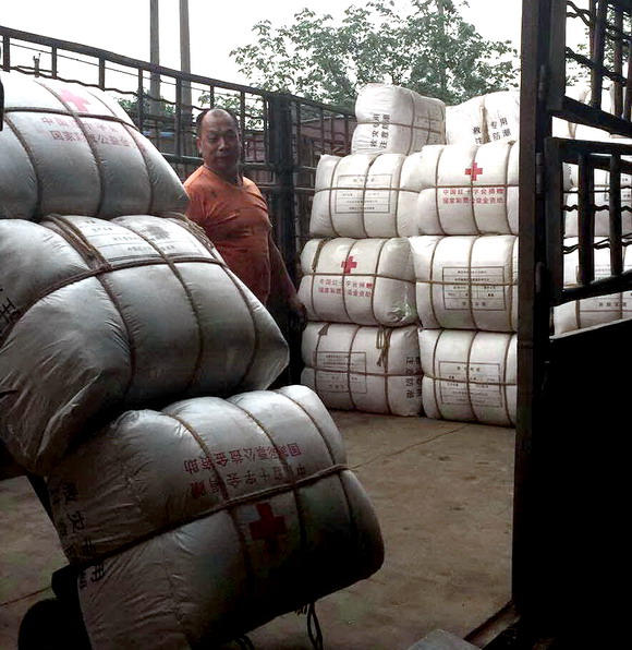 中国红十字会成都备灾救灾中心在装运发往西藏红十字会救灾物资秦小利摄影