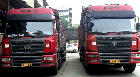 中国红十字会成都备灾救灾中心装满外发往西藏红十字会救灾物资汽车准备出发秦小利摄影