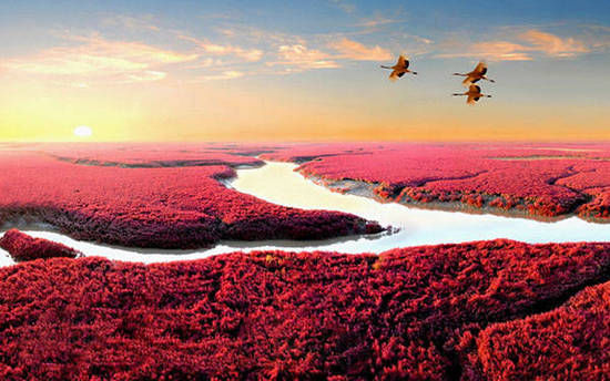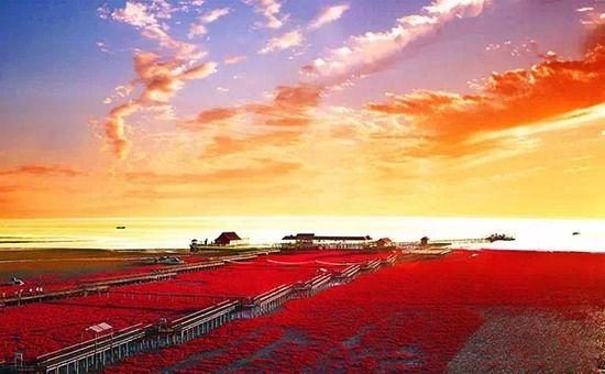 红海滩出现的时间太短了,只有选择恰当的地方和时机,才会看到退潮后鲜艳的碱蓬草的美丽画面。而国庆期间则是难得的时机,欣赏美景要择时。