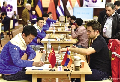 温州网讯 中国男子国际象棋队又一次让欧美列强服了!国象男子团体世界锦标赛昨天在亚美尼亚落幕,此前已经三次屈居亚军的中国队此番连克强敌,最终登顶。温州棋手丁立人作为中国队第一台选手打满全场,面对列强“男一号”,以2胜7和的不败战绩助中国队圆梦世团赛。
