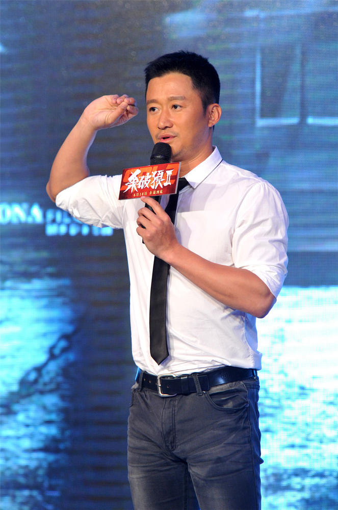 4月29日,动作巨制《杀狼破2》在京举行“狂战到底”发布会,博纳影业总裁于冬,监制黄柏高,导演郑保瑞(微博)和主演吴京、张晋、张驰等人出席,另一名主演、“泰国拳霸”托尼·贾遗憾未能到场。