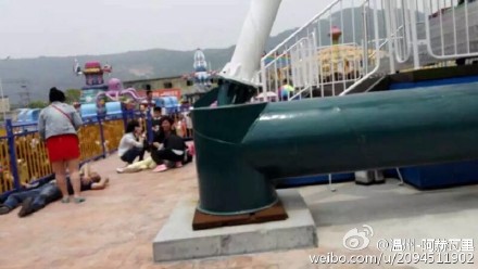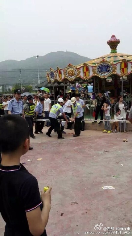 【平阳游乐场意外事故致1死4伤】5月1日12时5分左右,平阳县昆阳镇龙山公园游乐场狂呼项目发生意外事故,造成5人受伤,其中1人在平一医抢救无效死亡,另4人还在医院接受检查治疗,事故原因还在进一步调查中。(详情)