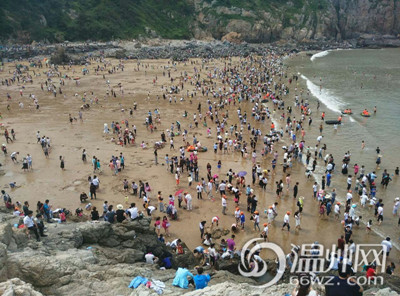 洞头大沙岙景区人满为患,进岛的路也走得异常艰难。(通讯员 林加杰)