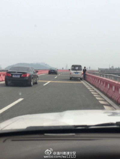 网友“愛車等於愛老婆”发微博称:甬台温高速台州方向,温州东出口有辆SUV在倒车。