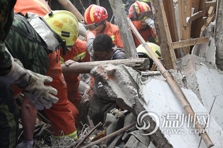 下午2点20分左右,郭溪梅园村枫林巷21号一幢两层民房倒塌。瓯海消防大队娄桥中队到场后从废墟中救出两人,目前伤者已经被送往医院救治。(严家佳)
