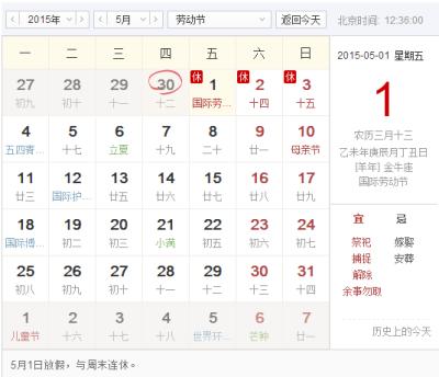【2015年五一劳动节放假通知】根据《国务院办公厅关于2015年部分节假日安排的通知》,2015年五一劳动节放假时间为5月1日至3日,共3天。5月1日为周五,与周末连休,不调休。