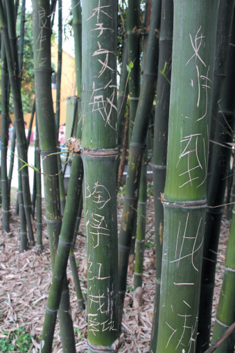 温州江心屿风景区内的许多竹子伤痕累累,被一些不文明的游客刮了很多伤痕。