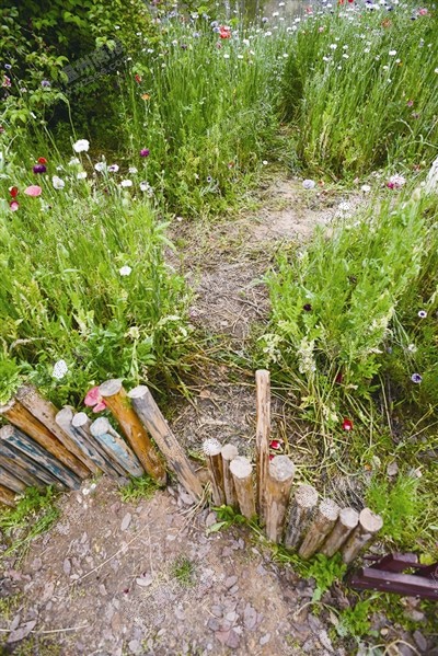 杨府山公园花田被踩踏出好几条路,木栏杆也被踢得东倒西歪。潘祝平摄