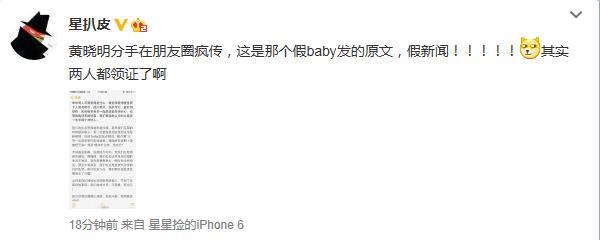 不仅分手一事相当不靠谱,更有网友曝料两人其实早已领证。而网友“关爱八卦成长协会”也出面辟谣,称黄晓明与baby今年会办婚宴,现在已经在策划婚礼了。
