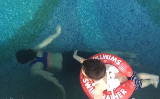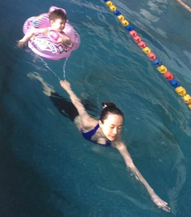 霍思燕陪儿子游泳秀好身材 嗯哼大眼可爱