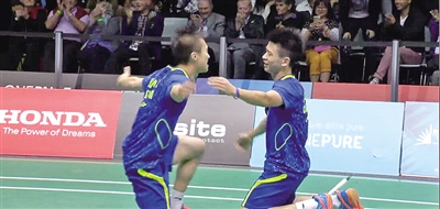 而男双比赛,并不具备“种子身份”的郑思维/黄凯翔却最终一路过关斩将杀入最后的决赛。昨天最后一场男双决赛,在郑思维/黄凯翔和印尼选手阿尔菲安/阿德里安托之间展开,作为7号种子的对手以21:16先声夺人,但郑思维/黄凯翔“不言放弃”,以21:17扳回一局,最后的决胜局两人越战越勇,打得对手毫无还手之力,以21:9完胜,最终以2:1逆转夺冠。拿下最后一分时,黄凯翔“倒地”,郑思维“跪地”,各显激情。