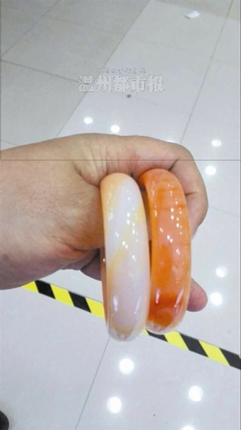 不料,一星期过去,那只玉手镯从橙红色褪成淡黄色,又从淡黄色褪成白色。陈女士起了疑心。