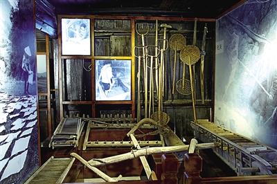 温州网讯 瓯海泽雅纸山民俗文化专题展示馆位于泽雅镇水碓坑村,是2012年12月开馆的,它是由当地的古民居建筑改建而成,面积300平方米。馆内布局典雅古朴,共6个展厅分三块展区,通过纸农的一天、纸农的一年、纸农的一生等内容,形象展示出千年纸山深厚的文化底蕴,展示以照片、风俗画和各类民间民俗文物组成。比如“纸农的一天”部分,在简要文字介绍的同时,不仅通过11幅照片反映纸农一天的劳动情景,还陈列了大量的用具用品,有纸砑、纸锉、纸帘等造纸工具,还有犁、水车等农业生产用具,反映了纸农既是手工业者又是农民的特殊身份,还有其他部分展示的谷印、煤油灯、一桌普通的农家饭菜及各类生活用具等,则全面展示了纸农的劳动、生活的方方面面,另外,通过蒙学、婚俗、做寿等民俗画,生动展示泽雅的民俗风情。