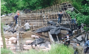 4月29日上午,由湖岭镇和瓯海泽雅镇共同牵头,两地环保、土地、住建等部门联合出动60余人,取缔金山村与瓯海交界处3家养猪场,拆除违章建筑500平方米,有效震慑了边界非法企业,为保护山区水资源起到积极作用。