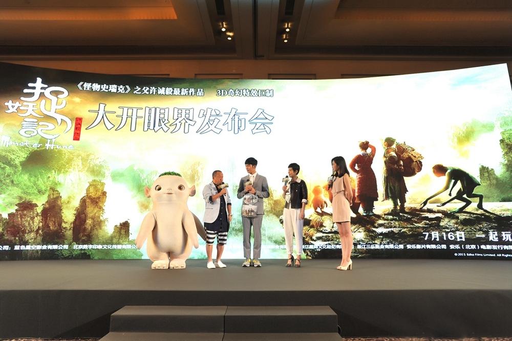 腾讯娱乐讯即将于7月16日暑期上映的奇幻爆笑巨制《捉妖记》于昨日在京举行了发布会,“怪物史瑞克之父”许诚毅导演携主演井柏然(微博),特别出演曾志伟、吴君如、保剑锋、王栎鑫(微博)与片中的“年度萌物”小妖王胡巴共同出席活动。这场名为“大开眼界”的发布会不仅曝光了许诚毅导演关于妖世界的众多创作手稿,还曝光了一支全明星阵容特辑,而令人最惊叹的大开眼界莫过于井柏然怀孕生妖。“以后可以做代孕妈妈了。”“喜当娘”的井柏然现场感慨生妖不易,且行且珍惜。