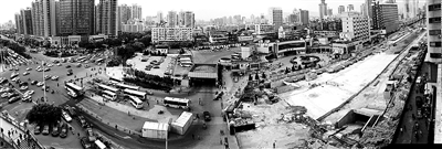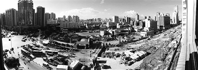 前天下午3点,记者从火车站广场前下车,沿着围墙向新南站方向走。围墙处有一道门,一名保安看记者探头往里看,以为是打算横穿马路的行人,表示“这里是不能走的。”记者询问,工程什么时候能完工,恢复通车。他笑笑说:“说是6月底通车,你看看,这都还没开始浇筑水泥,我看还早着呢。”