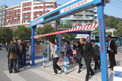 【守法行为上升至95%以上】市区四个路口的“斑马线智能护栏”均安装有杆与无杆两种“斑马线智能护栏”,投入使用以来,行人过斑马线变得秩序井然。交警部门专项监测发现,“斑马线智能护栏”安装后,行人闯红灯的行为明显减少,过斑马线遵章守法行为由之前的60%上升到95%以上。