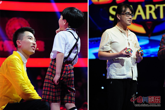 留着一头飘逸长发的王熠霄是一个艺能怪咖,人送绰号“聪明哥”,曾在不少综艺节目中露脸,喜欢挑战各类记忆及脑力考验。若问聪明到什么程度,他曾经一度把智商测试仪测爆掉!他不仅能够背诵全篇的百家姓,甚至连每一个姓氏的排位他都一清二楚。还现场与天团少年潘骜比拼背诵圆周率,让观众纷纷表示:“惊呆了”!不过这都只是“聪明哥”众多“神技能”中的冰山一角,在节目中,他还主动要求为大家表演“边玩魔方边答题”,不过魔方不易,趣题更难,面对天团少年的重重围剿,“聪明哥”是否搬起石头砸了自己的脚?