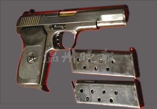 是我国自行研制的第一种手枪,1964年设计定型,1980年生产定型。配备于部队中高级指挥员及公安干警,是较理想的单兵自卫武器。在25米距离上,能射穿2毫米厚的钢板、7厘米厚的木板。