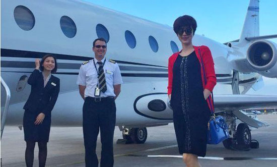 她晒了图片,坐的是私人飞机,老公于冬(博纳集团总裁)负责拍照。