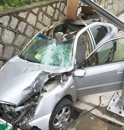 高速上司机开车睡着了 一觉醒来发现车顶被撞飞了