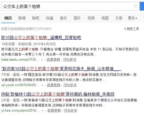 此外,记者还在网上找到了多个“寻找公交上那个女孩”的版本,几乎都是“移花接木”,只是对关键词作了修改。