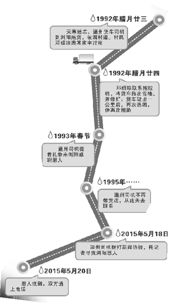 暴雪夜货车遇困村民伸援手 温州司机23年后寻恩人