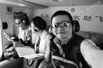直升机内部没有豪华的装饰,墙上“固定”了各种专业的救援工具。驾驶舱内,两位机长用对讲机不断交流,但我什么也听不见。此外,机上还另有五个座位,全被我们几个体验者占了。为保障我们安全,“东一飞”随机安排了两名机组人员随行,他俩可怜地只能坐“地板”。