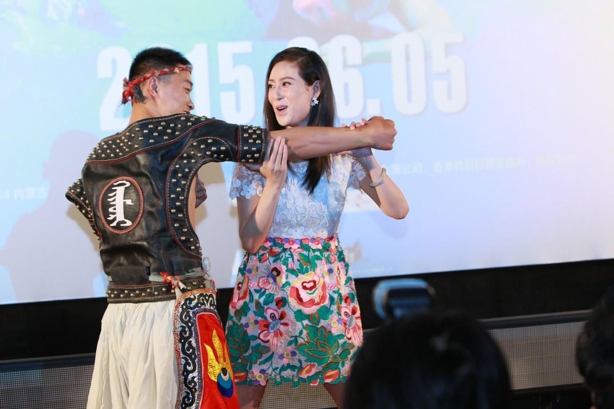而在片中与陈伟霆上演爱情戏的女主角赵柯,介绍自己的角色是一位在内蒙古土生土长的女摔跤手,有一场蓝色泥浆大战,堪称是本片最大的亮点之一。她还不忘“炫耀”与陈伟霆的亲密互动,自曝与陈伟霆有激情吻戏。值得一提的是,赵柯按捺不住女摔跤手的本能,看到现场蒙古摔跤大汉表演,非常威武地脱掉高跟鞋,摆开架势,轻舒粉臂,用一个精彩的背摔将壮硕的蒙古大汉摔倒,引发全场欢呼。