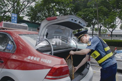 每天开展出租车车容车貌检查成为常态,图为运管稽查人员在安澜亭码头检查出租车车容车貌。胡炜摄