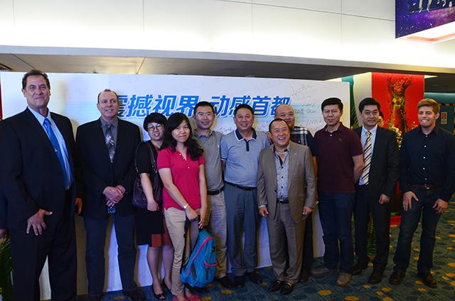 发布会上,山东鲁信睿浩视觉技术有限公司董事长姜东、美国MediaMation公司副总裁Daniel Jamele、首都电影院总经理邓永红以及香港著名影星曾志伟共同为影厅揭幕,标志着华北首家MediaMation MX4D™影厅正式启动,到场的万达、大地、金逸等十多家国内知名院线代表,以及博纳、五洲等制片及发行方代表等众多业界精英共同见证了这一历史性时刻。