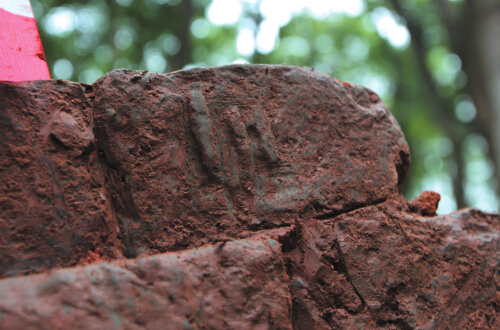 据了解,墙体用青砖砌成,底部挖有基槽。底砖外凸,上部墙体以青砖三顺一丁错缝平砌而成,且逐层向上内收,砌筑规整。砌法遵循北宋李诫《营造法式》的“露龈造”样式。包砖墙内填充山土,内侧立面参差不齐。城砖分为大、小两种规格,大砖长37×宽18×厚8cm,小砖长33×宽14×厚7cm。端面发现有“一”“二”“三”“七”(反文)等数种模印阳文数字或符号,以“二”“三”居多。