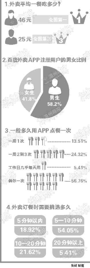 温州用APP点外卖的男生多还是女生多?最土豪的一餐吃掉多少元?大伙儿都爱吃什么餐品?想知道答案的,不妨看过来。