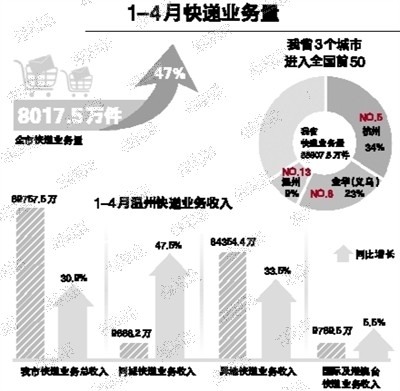 1—4月温州快递业务量8017.5万件 居全国第13位
