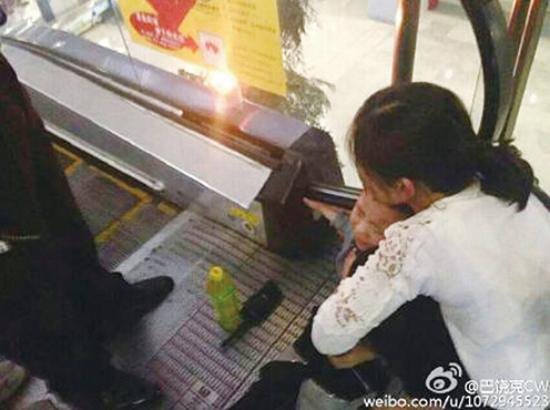 妈妈接电话时一不留神 自动扶梯“咬”住男童手掌
