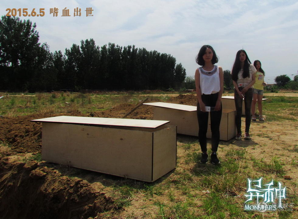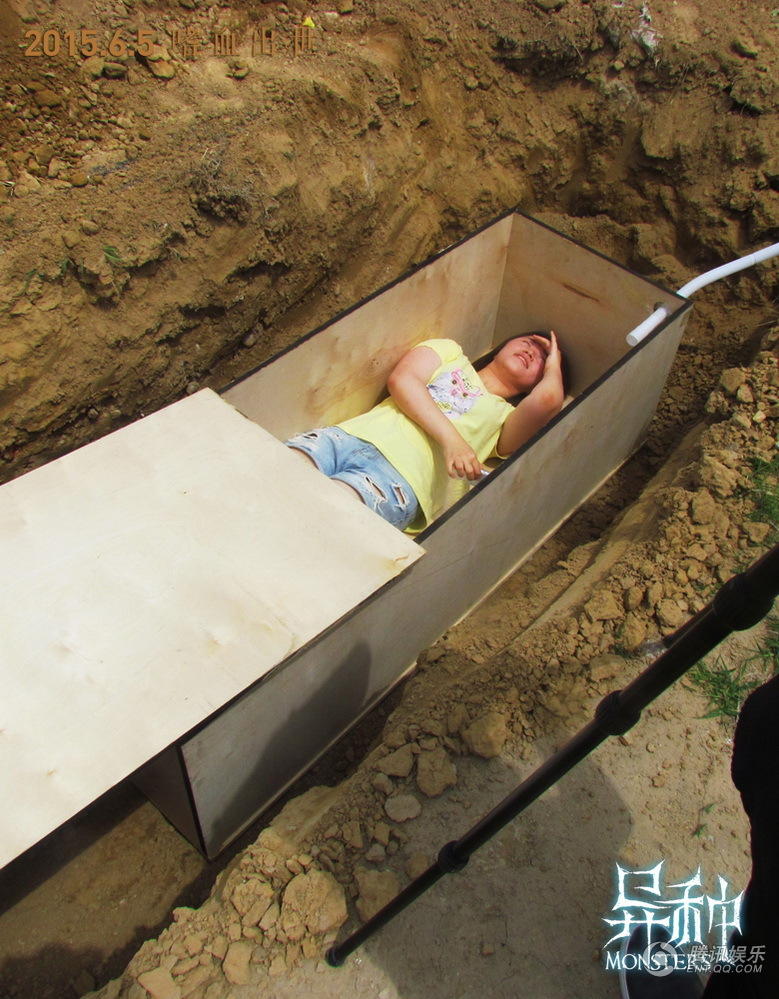 《异种》讲述的是女主角被活埋在地下30米的黑暗幽闭空间内所发生的一连串惊险遭遇。为了让广大影迷充分体验到活埋的恐惧气氛。片方全网悬赏征集美女来挑战活埋6小时体验活动。数以千计的美女争相报名参加,最终网名为大元子、双双、喵酱的3位美女幸运成为活埋挑战者。5月31日,在北京大兴郊区80公里的一处荒地,3位美女正式挑战活埋6小时。片方请来的宇宙神器挖掘机来执行活埋工作,让3为埋女望而却步。为了提供做完善的安全保障,工作人员请来2位急救医生随时待命,每个活埋木箱安装有通气管道,每位埋女配一瓶水和一部求救手机。片方更重金为3位埋女购买了超百万元的保险。