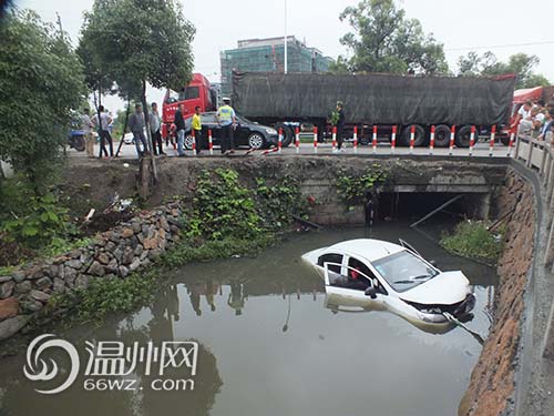据雪佛兰轿车驾驶员蔡某陈述,他当时驾车载着2位大人、2位孩子从平阳鳌江开往苍南灵溪,10时许,经过事故路段,当时正下雨,路面潮湿,视线也不是很好,他由于赶时间,车开得比较快,突然他发现左侧路口有一轿车开出来,他急忙踩刹车并向右驾方向避让,结果已经来不及了,车头碰撞对方车辆后,向右侧冲进旁边的河里,万幸的是河水不深,车内孩子未受伤,2位大人受轻伤,在附近群众及时救助下,车内人员安全脱险。现该事故还在进一步的调查处理。