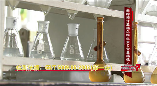 检测结果为:三款橙汁饮料里的VC含量均达到了瓶身标注的维生素C含量标准,并没有出现维生素C所剩无几的状况,有的甚至达到了标注维生素C含量的3.9倍之多。