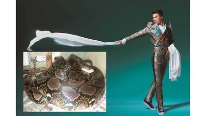 赵又廷穿蛇皮为公益慈善活动拍照