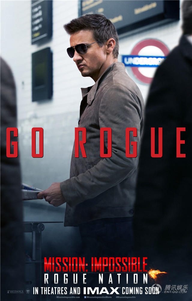 《碟中谍5》曾于2015年3月23日,首发海报和预告片,里面阿汤哥“扒飞机”的镜头让先睹为快的观众震撼不已。本版预告片中,阿汤哥饰演的伊桑·亨特身陷薄雾之中,而杰瑞米·雷纳饰演特工威廉·布兰特也首次亮相,黑超掩面似乎暗中捕捉敌人动向。海报上红色的“Go Rogue”字样,也预示着特工们将深入敌人内部的新任务。此外,丽贝卡·弗格森、亚历克·鲍德温、文·瑞姆斯以及反派肖恩·哈里斯纷纷亮相,而此前在剧照和预告中频频现身的西蒙·佩吉并没有推出个人海报。《碟中谍5:神秘国度》将于7月31日暑期档北美上映,国内档期未定。