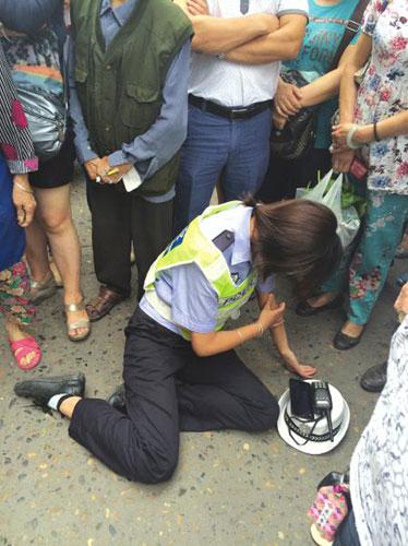 协警杨凤被打倒在地