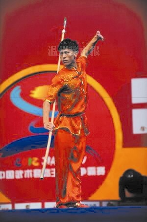 据介绍,张耀文在比赛中绞枪、崩枪、劈枪,每一个动作都显示出“枪王”的风采,现场观众和裁判都被这气势十足、行云流水的表演所征服。