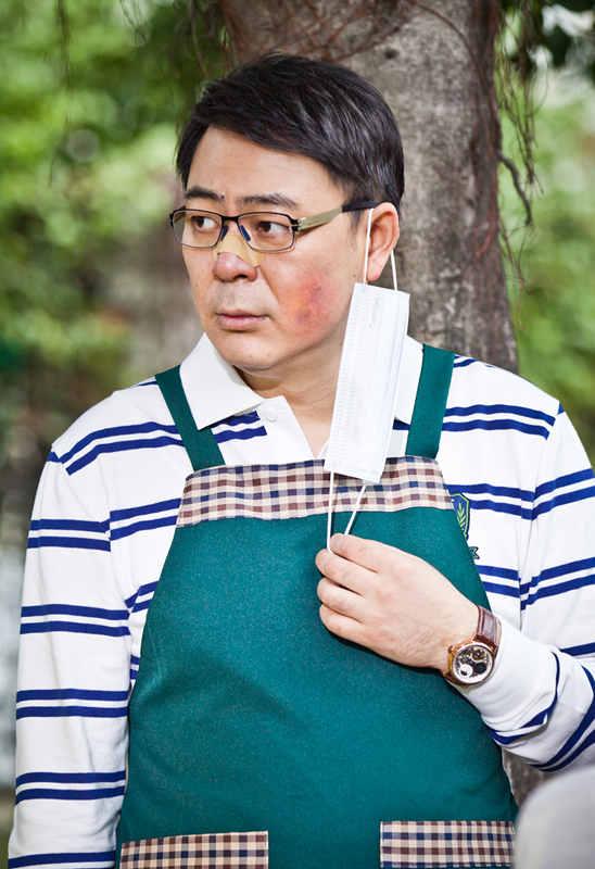 高亚麟(微博)扮成学校食堂员工在等儿子