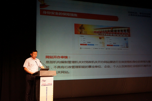 6月4日上午,中央编办政务和公益机构域名注册管理中心(CONAC)域名业务部主任李秦峰向前来参观的群众做了题为“网上名称管理筑牢——互联网+政务的基础”的主题演讲。CONAC就目前我国党政机关、事业单位网上身份存在的七大问题,从三方面提出解决方案,帮助网民识别党政机关、事业单位的官网。