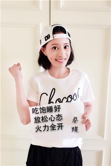 虽然最近的拍摄工作十分辛苦紧张,蔡蝶仍然抽出时间总结自己当年考试的三句箴言:“吃饱睡好,放松心态,火力全开”,希望能为考生们缓解压力,考出自己最佳水平。