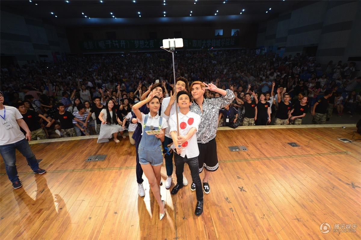 何炅导演一上台就用四川话喊出“我爱你”,示爱现场的同学们,现场同学大声回应“何炅,我爱你”,点燃了整场校园行的热烈场面。自称是“新人导演”的何炅,现场和大家分享了片场趣事,好脾气导演遇到“不听话”的演员也会发狠怒吼“到底还还拍不拍”,结果遭遇了对讲机没电的囧况,全场除了自己以外,其他人竟然都不知道导演已经发火了!