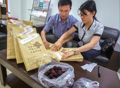 采购完成后,记者将杨梅送至温州市农产品检验测试中心。姚卡/摄
