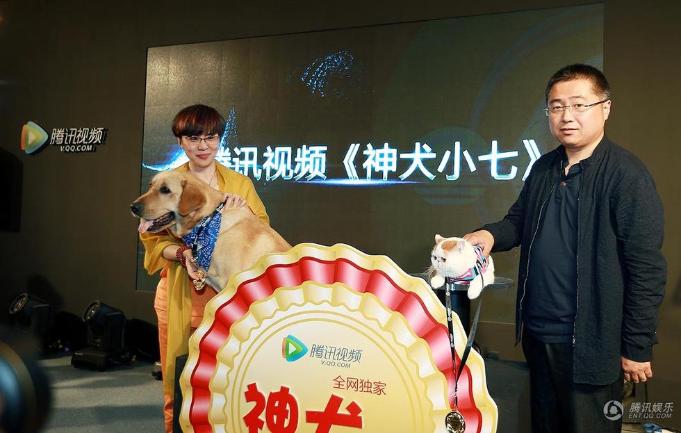 发布会上,腾讯视频副总编辑常斌和《神犬小七》总制片人何静为小七和红小胖两位特别的“主角”授予奖章并按动启动按钮,《神犬小七》将于暑期档登陆腾讯视频。