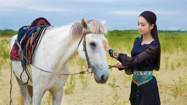 佟丽娅抚摸骏马